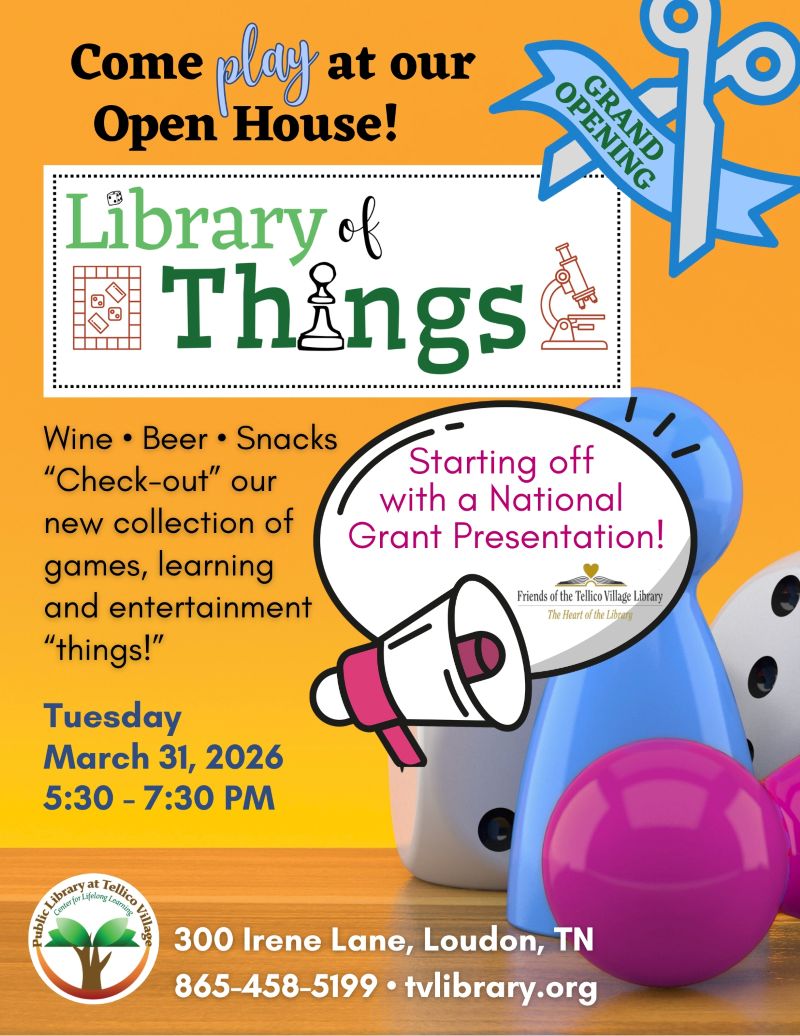 Check out our Library of Things (LOT)! A Library of Things is your community’s go‑to spot for borrowing cool stuff instead of buying it. Think of it as a library—but for tools, gadgets, games, and gear. It’s the place for all those useful, fun, and “I‑just‑need‑this‑once” items. Why buy it when you can borrow it?