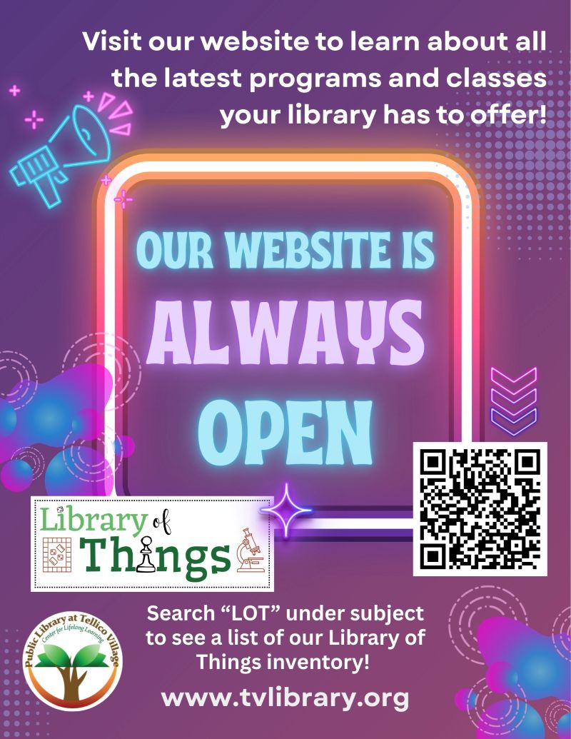 Visit the library website to find more information on the library services and fundraising events https://www.tvlibrary.org .