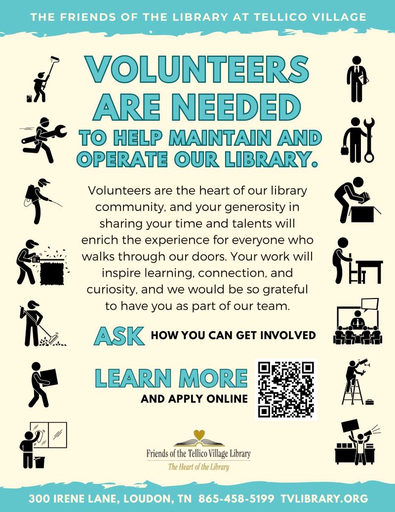 Volunteer Opportunity: Come for the community, stay for the fun! Be on our volunteer team and have a blast helping your library thrive! Join today: www.tvlibrary.org/volunteer-opportunities