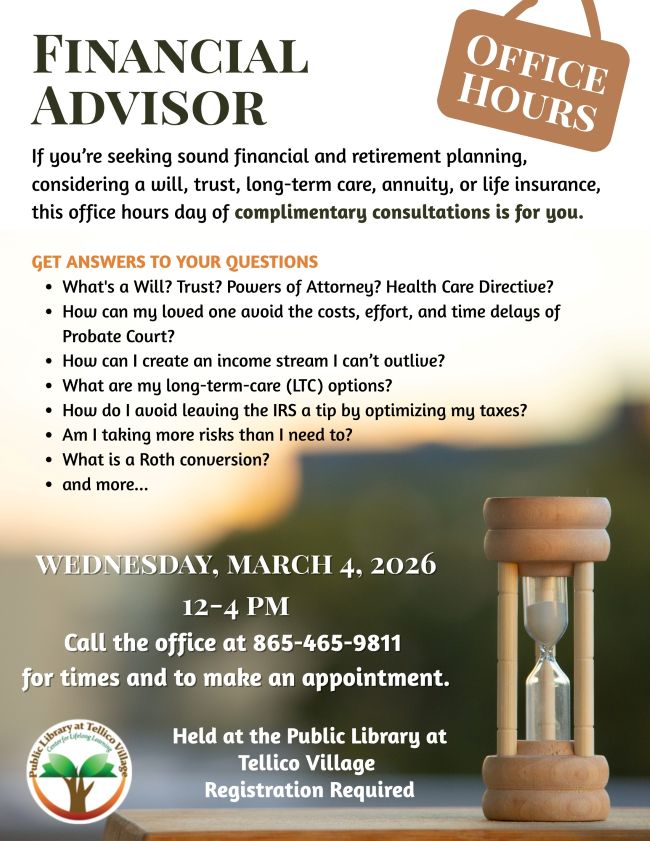 Tellico Village Public Library - Financial Advisor Office Hrs |